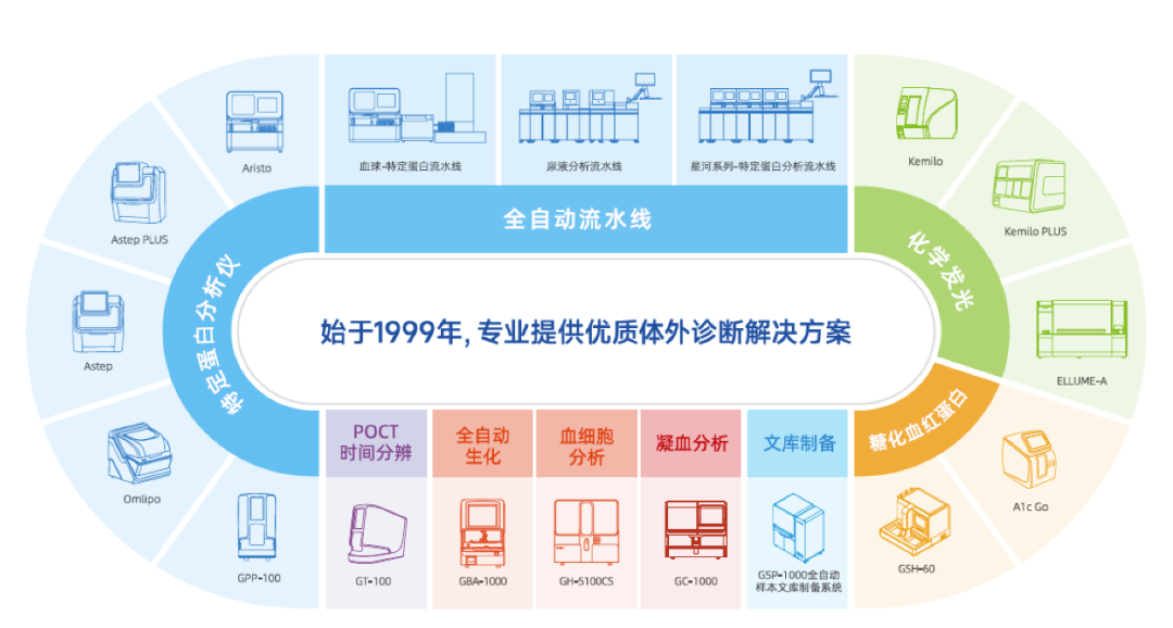 国赛生物成立20多年来,专注于特定蛋白检测,并坚持自主创新研发和生产。在特定蛋白产品上形成了国内最丰富的产品布局,其中注册仪器超10款,注册试剂项目超50项。从2005年的半自动特定蛋白分析仪到2015年的全自动特定蛋白分析仪,再到近几年的特定蛋白分析流水线;检测项目从全血CRP,SAA、再到风湿免疫检测、尿液蛋白检测及近期获得注册上市的IgG亚型和游离轻链检测,为临床提供了全面的检测解决方案。国赛生物一直在引领国内特定蛋白行业的发展。特定蛋白相关产品已覆盖国内近万家客户,其中,三级以上医院占比超20%。国赛生物特定蛋白产品在行业内提出了“十年质保”,国赛产品性能优异、品质可靠 。“国赛品质,十年质保”的品牌理念也获得众多客户的认可。国赛生物获评为国家级专精特新“ 小巨人”企业、国家高新技术企业、广东省特定蛋白检测系统工程技术研究中心、深圳市特定蛋白自动化分析系统工程研究中心、广东省级工业设计中心、深圳市博士后创新基地等,在行业内树立了良好的声誉。