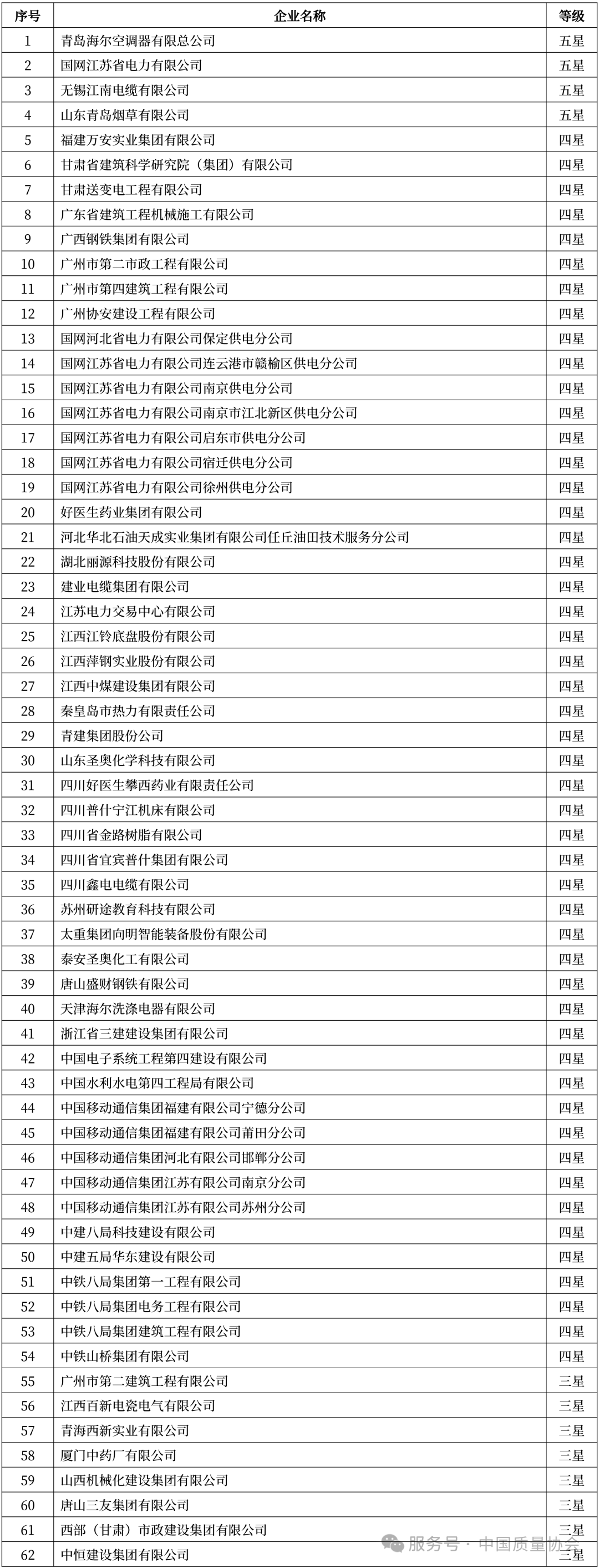 评价工作依据《顾客满意度测量和评价准则》(T/CAQ 10306-2022),从顾客满意度测量过程、顾客满意度结果和企业用户满意经营管理水平三个维度进行评价。在企业自愿申请基础上,经推进机构初审、专家评审、结果审定等环节,最终评定青岛海尔空调器有限总公司等62家用户满意星级企业、深圳市机场股份有限公司安全检查站“深安有礼”班组等20个用户满意星级班组、山东港口日照港集团有限公司港口装卸服务等46项用户满意星级服务、福建省铁拓机械股份有限公司沥青厂拌热再生设备等54项用户满意星级产品、山西建筑工程集团有限公司河津经济技术开发区双创基地建设项目等57项用户满意星级工程,现将评价结果予以公布。