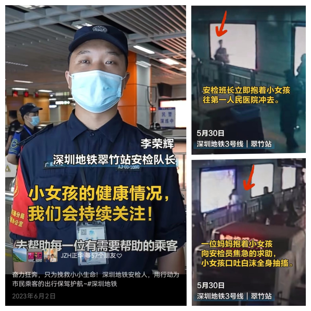 在深圳这座充满活力的都市,地铁不仅仅是一种交通工具,更是城市文化的传递者和温情的纽带。每一天,深圳地铁都在默默地见证和诉说着这座城市的温情故事,通过优质的服务和对乘客的深切关怀,为市民的出行增添了一份温暖。2023年5月下午,在3号线翠竹站,阳光透过玻璃穹顶,一片宁静与祥和。然而,这份宁静被一声急切的呼喊打破。一名妇女怀中的小女孩突然脸色苍白,身体抽搐,口吐白沫,双眼紧闭,显然已失去了意识。在这危急时刻,安检队长李荣辉毫不犹豫地冲上前,从妇女手中稳稳接过孩子,以坚定的眼神和迅疾的步伐,穿过熙熙攘攘的人群,直奔出口。周围的乘客被这突如其来的情况吸引,纷纷投来关切的目光。李荣辉却无暇顾及,他的心中只有一个念头:尽快将孩子送到医院!几分钟后,李荣辉抱着孩子,飞奔进急诊室。经过医生的及时救治,孩子终于脱离了危险。当得知孩子已经安全时,李荣辉长舒了一口气,紧绷的神经终于放松下来。尽管汗水浸透了他的衣衫,但他的眼神坚定而有力,仿佛在告诉每一个人:“别怕,有我们在!生命至上,温情无疆……”安检队长李荣辉奋力狂奔的挽救生命,正如他说的一样:“看见小女孩的情况比较危急,作为一名地铁安检员就想着能尽快地将她送医治疗,去帮助每一位有需要帮助的乘客,时间就是生命。”这样的凡人善举,是城市文明的生动注脚,已嵌入城市的每一个角落。